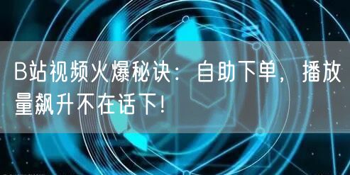 B站视频火爆秘诀:自助下单,播放量飙升不在话下!