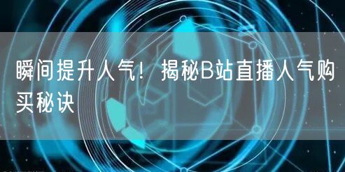 瞬间提升人气!揭秘B站直播人气购买秘诀