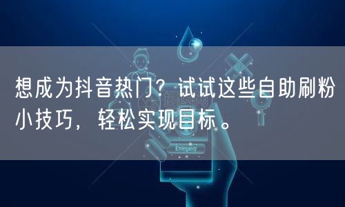 想成为抖音热门?试试这些自助刷粉小技巧,轻松实现目标。