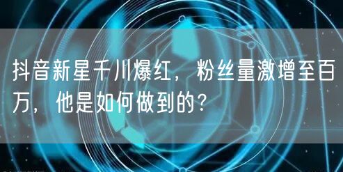 抖音新星千川爆红,粉丝量激增至百万,他是如何做到的?
