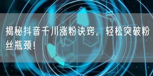 揭秘抖音千川涨粉诀窍,轻松突破粉丝瓶颈!