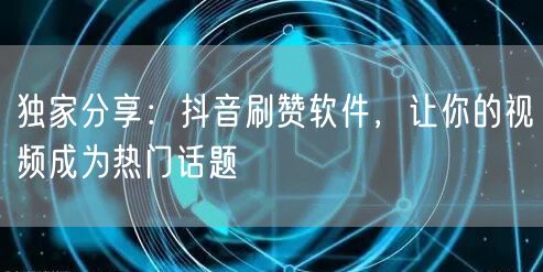 独家分享:抖音刷赞软件,让你的视频成为热门话题