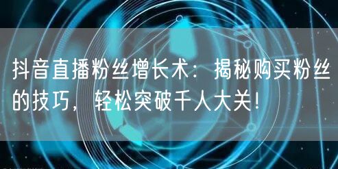 抖音直播粉丝增长术:揭秘购买粉丝的技巧,轻松突破千人大关!