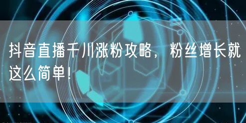 通过以上抖音直播千川涨粉攻略,相信你能轻松实现粉丝增长。记住,持续努力和创新是吸引粉丝的关键。祝你抖音直播涨粉无数,影响力越来越大!