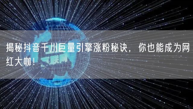 揭秘抖音千川巨量引擎涨粉秘诀,你也能成为网红大咖!