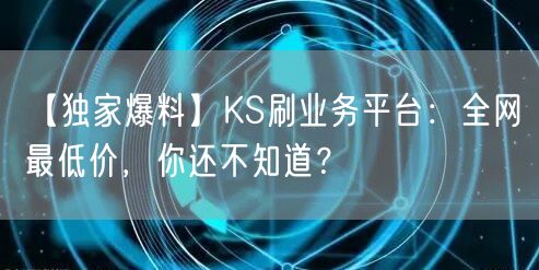 【独家爆料】KS刷业务平台:全网最低价,你还不知道?