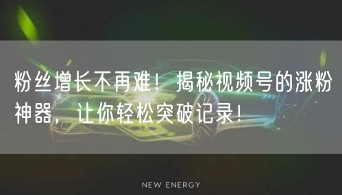 粉丝增长不再难!揭秘视频号的涨粉神器,让你轻松突破记录!