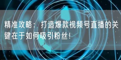 精准攻略:打造爆款视频号直播的关键在于如何吸引粉丝!