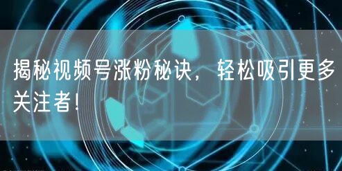 揭秘视频号涨粉秘诀,轻松吸引更多关注者!