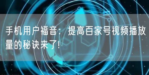 手机用户福音:提高百家号视频播放量的秘诀来了!