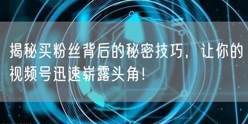 揭秘买粉丝背后的秘密技巧,让你的视频号迅速崭露头角!